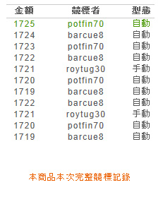 - 您下標所消費的點數每次需要點數一點,無論最後是否得標均無法退還。